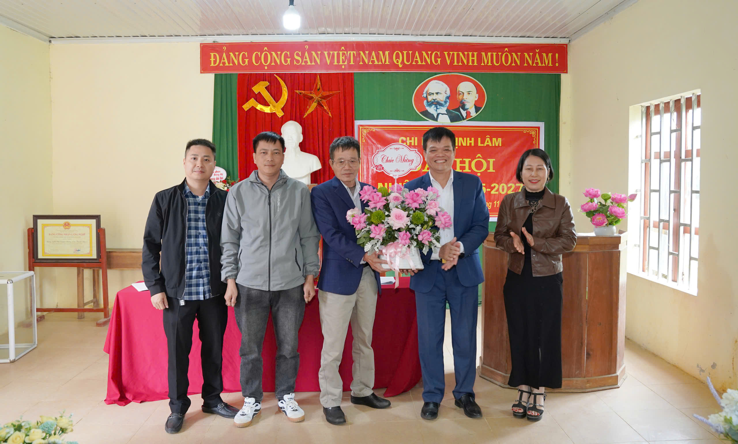 Lãnh đạo xã tặng hoa chúc mừng Chi bộ